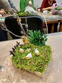 Dne 19.4. se nás sešlo díky velké nemocnosti jenom deset. Velikonoční zahrádku každá z účastnic zpracovala osobitě. |