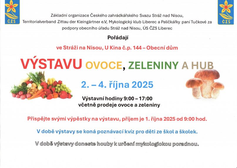 Ve dnech 2.-4. října 2025 proběhla výstava Ovoce, Zeleniny a Hub ve Stráži nad Nisou.