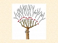 -očkováním na semenáčky Rosa canina (růže šípková). Chceme dosáhnout, aby rostliny nebyly moc vysoké. Očkováním přenášíme jedno jediné očko