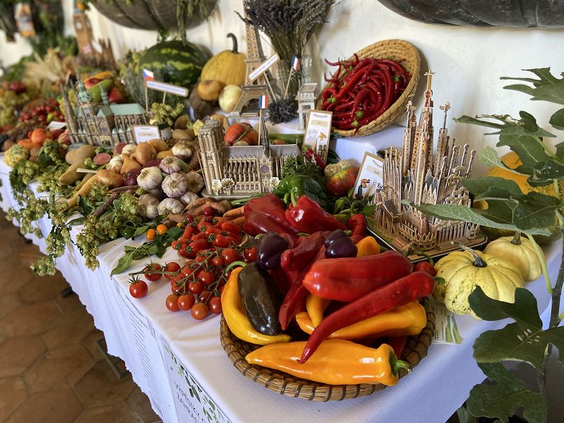 Letošní oblastní výstava, konaná tradičně v prostorách koníren Zámku Slavkov u Brna měla téma - Svět v zahradě. Naše výpěstky jsme doplnili miniaturami světových staveb. Aranžovali jsme také dva žlaby nad našimi výstavními stoly.