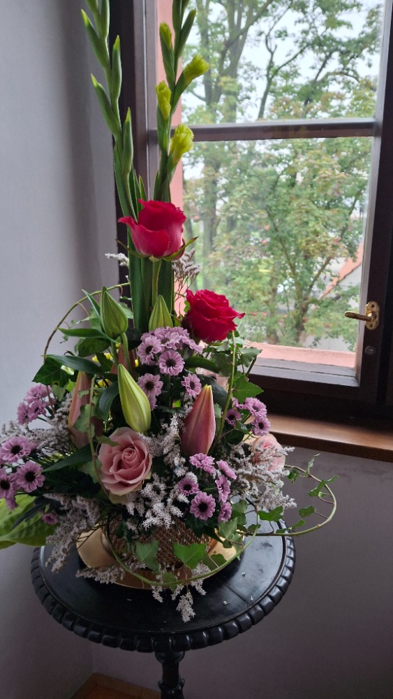 Zámek Kunín je považován za jednu z nejcennějších barokních památek severní Moravy a Slezska. Byl postaven v r. 1726-34 jako venkovské sídlo rodiny Harrachů. Na zámek Kunín se naše zahrádkářská organizace vypravila zejména na komentovanou prohlídku výstavy Růže pro paní hraběnku. Historické vazby květin v celém zámku připravoval přední český florista, občan Šlapanic, pan Slávek Rabušic se svými přáteli a studenty Střední zahradnické školy v Ostravě. Prohlídku celého zámku, květinových vazeb a dekorací včetně velice poutavého výkladu jsme absolvovali s panem Slávkem Rabušicem, který se nám velice věnoval. Prošli jsme pohostinné pokoje, taneční pokoj, obrazárnu. Na závěr jsme navštívili půdu s unikátním barokním komínovým systémem.