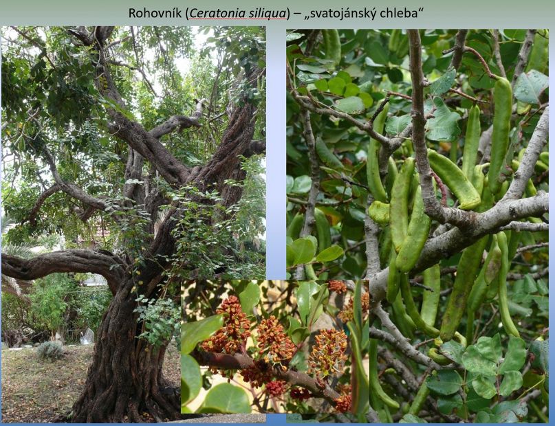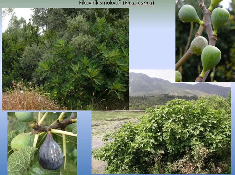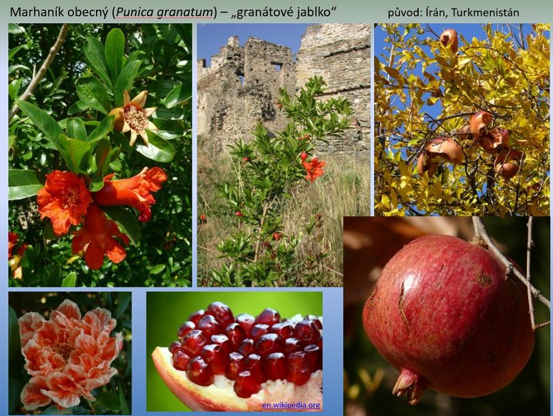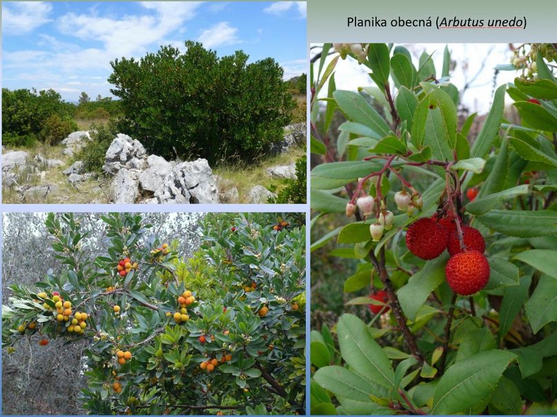 granátové jablko, korkový dub, fíkovník, cypřiš, zmarlika, planika, rozmarýn,
