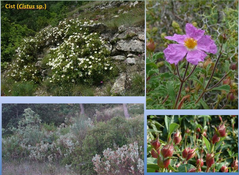 cist, kalina (Viburnum tinus), sápa, vavřín, oleandr