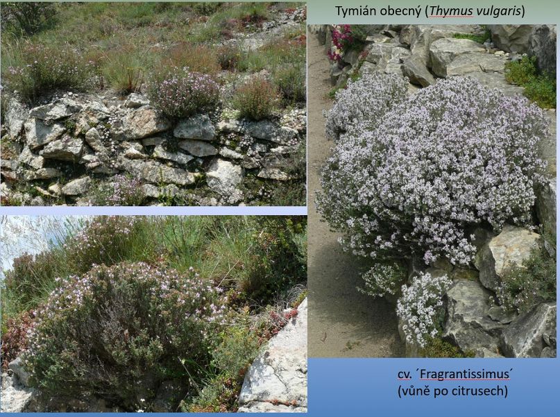 levandule, mikromerie, tymián, mateřídoušky, cibuloviny a hlíznaté rostliny,