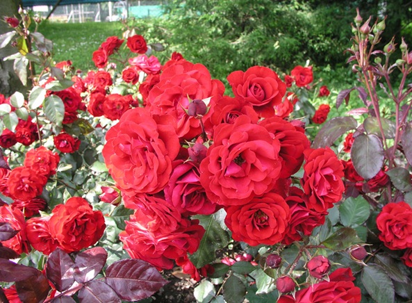 všechny růže, které vysazujeme do trávníků parků a sadovnických úprav, kromě růží záhonových a popínavých