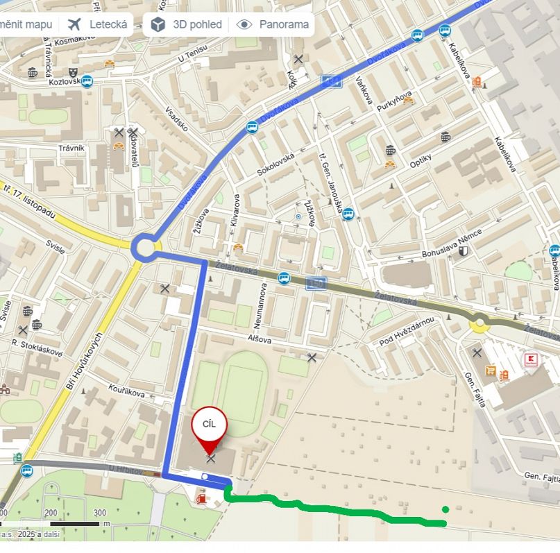 Na zahradu se dostanete cestou, která je mezi zimním stadionem a benzinkou Mol, míří na východ, asi 400 m. Zelená tečka na přiložené mapě. Souřadnice 49 26 47 S a 17 27 48 V, pozemek 5386/1 k.ú. Přerov. Místo pro parkování tam je.